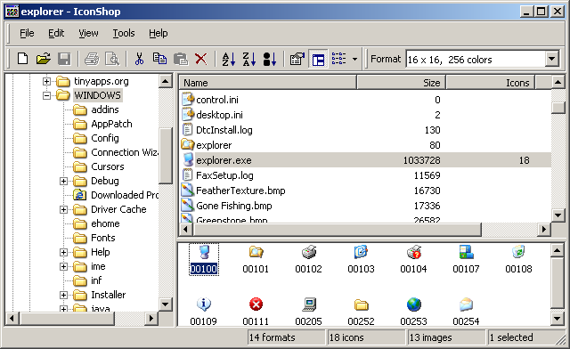 IconShop 1.13 [90k] + Read and write ICL icon libraries; extract icons from Windows icons, cursors, animated cursors, BMP bitmaps, GIF bitmaps, TIFF bitmaps, XPM bitmaps, resources, executables and libraries; extract icons from Macintosh icons, resources, executables, IconDropper icon packs and Kaleidoscope schemes, including MacOS 8.5 24-bit and MacOS X 32-bit icons; export icons to icon, cursor BMP or TIFF bitmap format. 📺