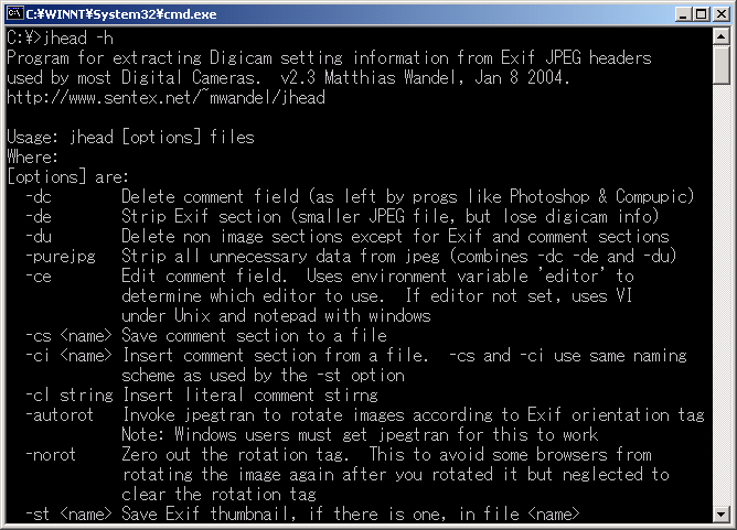 🌱 jhead 2.3 [94k] {S}+ Extract/modify digital camera setting information from exif JPEG files, strip unnecessary data, more. Precompiled binaries available for Windows, OS X, Linux, FreeBSD, and Solaris. 📺