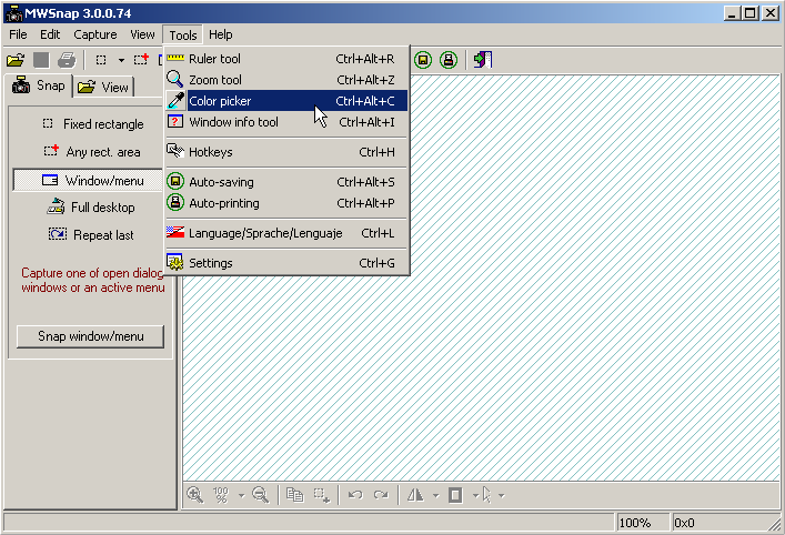 MWSnap 3.00 [601k] + Screen capture program which supports PNG, JPG, GIF, TIFF and BMP formats. Custom color depth & quality settings, zoom, screen ruler, and color picker. 📺