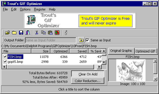 🌱 Trout's GIF Optimizer [365k] + Shrink GIF files. Batch processing, color palette reduction, more. Donation required to remove nag. 📺