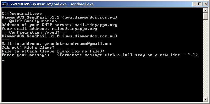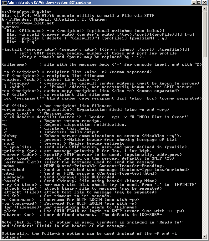 Blat 1.9.4 [74k] {S}+ Console utility that sends the contents of a file in an e-mail message using the SMTP protocol. 📺