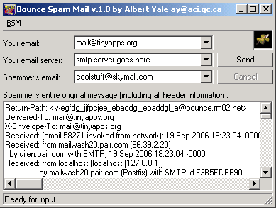 Bounce Spam Mail v.1.8 [271k] + Send fake bounce messages. Does not support SMTP authentication. 📺 💾 🌎