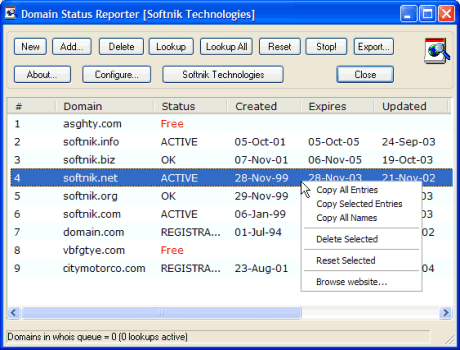 Domain Name Status Reporter [328k] + Monitor the registry status of domain names. 📺