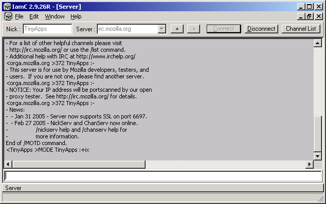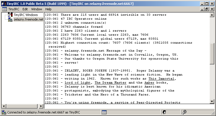 🌱 TinyIRC 1.0 Public Beta 5 (Build 1099) [60k] + The goal of this project is to create the world's smallest IRC client for Win32, with as many (if possible, all) of the features that you're used to in your current IRC client. 📺 💾