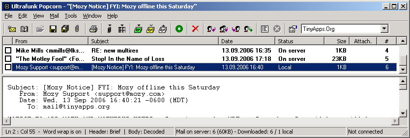 🌱 Popcorn 1.99.3 [151k] {S}+ Ultra-lightweight POP3/SMTP email client. Check/delete mail on server before downloading. 📺