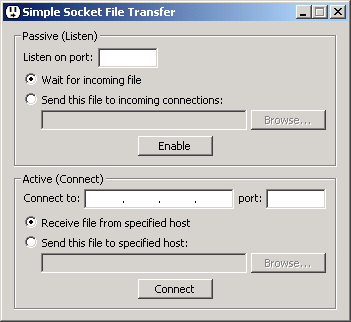 🌱 Simple Socket File Transfer 1.0 [9k] + Transfer a file between two computers using the TCP port of your choosing. Partially completed transfers can be resumed, and files are automatically checked with MD5 to ensure they were received error-free. Supports very large files (up to about 4 petabytes). 📺