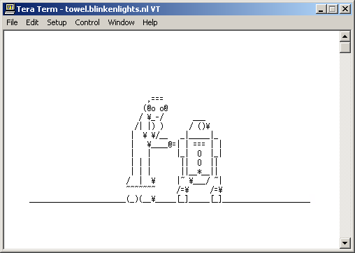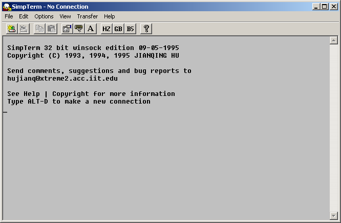 Tera Term (Pro) 2.3 [922k] {S} Supports serial port connections; TCP/IP (telnet) connections; VT100, select VT200/300, and TEK4010 emulation; file transfer protocols (Kermit, XMODEM, ZMODEM, B-PLUS and Quick-VAN); scripting; Japanese & Russian character sets; more. SSH module also available. 📺