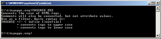 🌱 TAGCASE [6k] {S}+ Converts the case of HTML tags without disturbing attribute values. Includes ANSI C source and DOS executable. 📺 💾