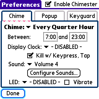 Chimester 1.8 [22k] Can be set to play a MIDI/WAV file, vibrate, or activate the LED on the hour or any 15 minute increment thereof. Find in Prefs > Other after installation. 📺 💾