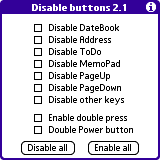 Disable Buttons 2.1 [6k] Disable the hard buttons from powering on your Palm device. 📺