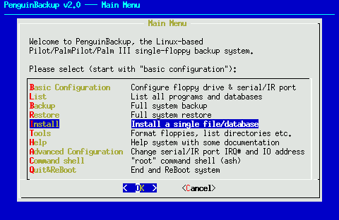 🌱 PenguinBackup [1249k] {S}+ Backup and restore your PalmPilot (OS 1.x - 3.x) with a single floppy. 📺