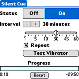 SilentCue 1.2 [54k] Vibrates Palm device at custom interval ranging from 1 to 60 minutes. 📺