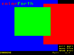 🌱 colorForth [63k] {S}+ A dialect of Forth that uses color to replace punctuation. Includes its own operating system. Produces extremely compact programs. Instant compile from pre-parsed source. 📺