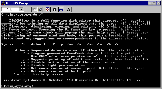 🌱 DE v3.0 [70k] + Very powerful disk editor for 12 and 16-bit FAT drives. Extensive documentation included. 📺