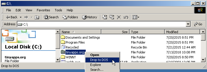 Drop To DOS [10k] + With Drop to DOS, you can right click on any folder and choose the Drop to DOS option to take to you a command prompt within that folder. 📺