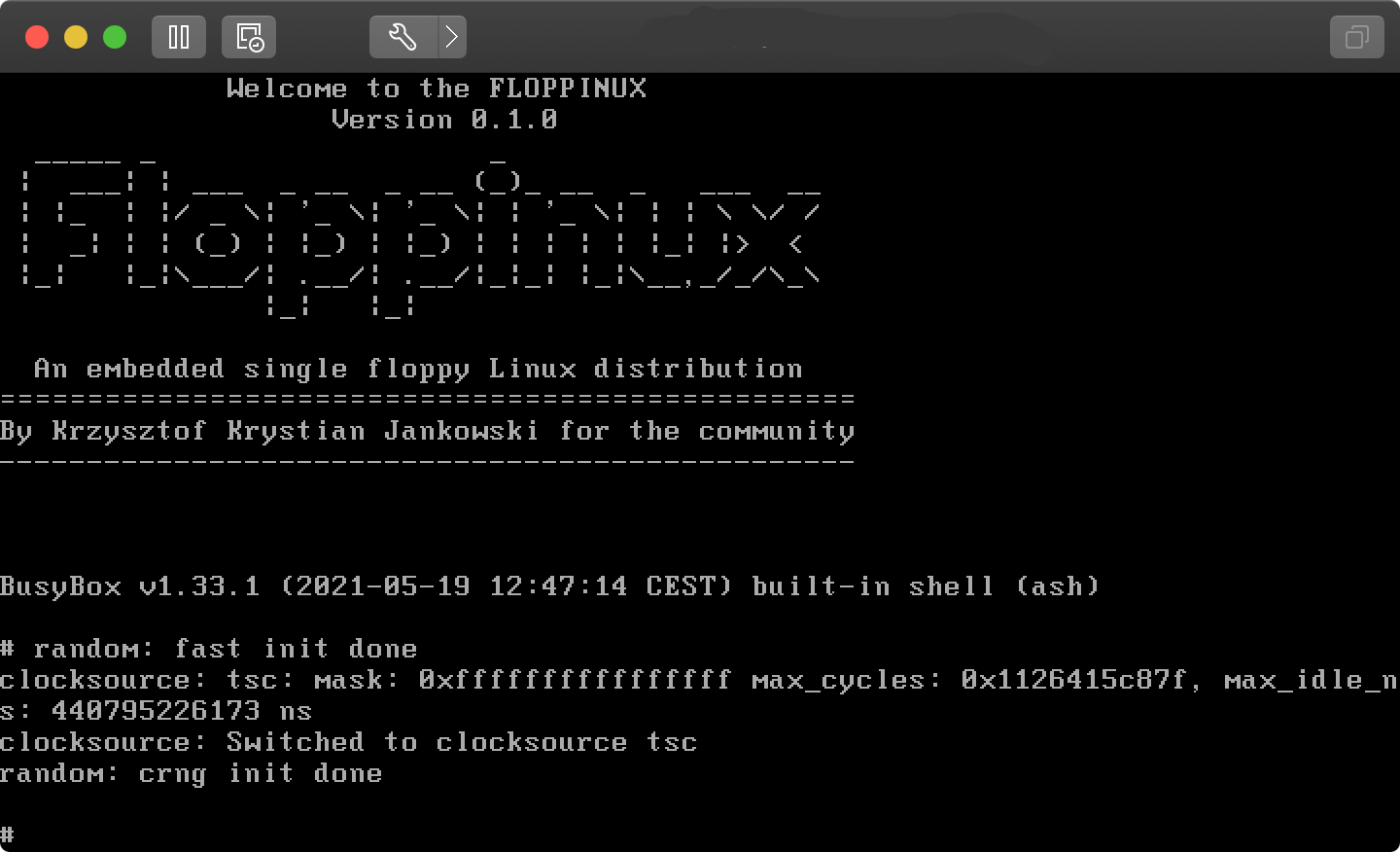 🌱 Floppinux 0.1.0 [1440k] {S}+ "An embedded Linux on a single floppy". Released May 2021. Includes build instructions. 📺