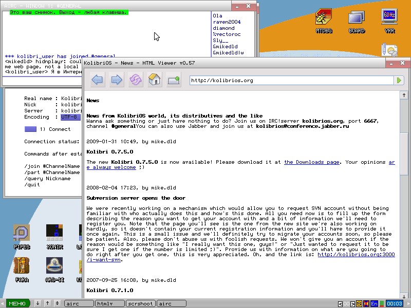 🌱 KolibriOS 0.7.7.0 [1440k] {S}+ A small x86 assembler hobby operating system, forked from MenuetOS in 2004. 📺