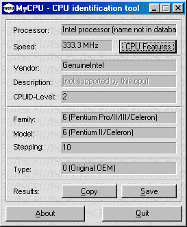 🌱 MyCPU 1.13f [47k] + Displays CPU info: vendor, type, model, stepping, speed, cache, more. 📺