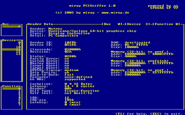 🌱 Merlin's PCI Hardware Sniffer 1.1 [209k] {S}+ Produces detailed report of all connected PCI, AGP & CardBus devices, including the system chipset. 📺