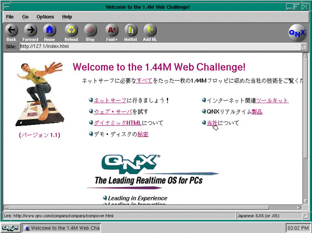 🌱 QNX Demo Disk [1400k] + "A Web browser, a web server, a POSIX-certified realtime OS, TCP/IP and a windowing system on a single 1.44 Mbyte floppy disk." (Note: QNX has removed the Demo Disk from their website and has not responded to my phone calls and emails to restore it or allow me to post it here. The link, therefore, points to the Wayback Machine's cached version. You can find the downloads here.) 📺
