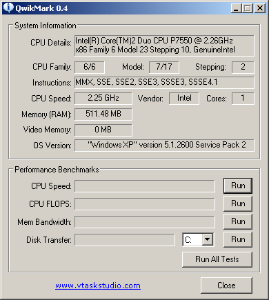 🌱 QwikMark 0.4 [84k] + Benchmarks CPU speed, FLOPS, memory bandwidth, and disk transfer. Also provides CPU details, instruction set, and more. 📺