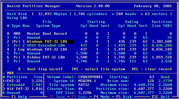 🌱 Ranish Partition Manager 2.40.00 [96k] {S}+ Partition tool for experts and would-be experts. Free for private use, educational and non-profit organizations for 10 years. 📺