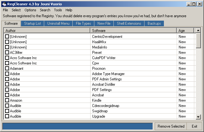 RegCleaner 4.3 [540k] "Easily get rid of those old and obsolete registry entries created by software that you have destroyed ages ago." 📺