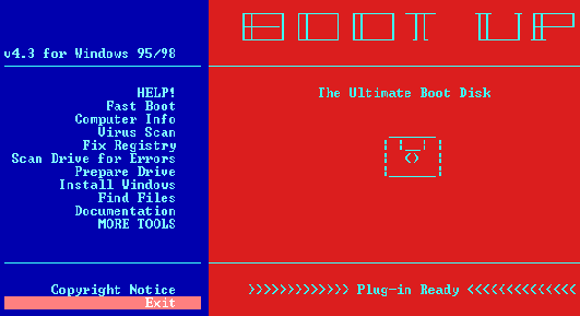 The Ultimate Boot Disk 4.3m [615k] + Partial list of features: Restores system files, installs Windows faster, identifies PC hardware, extracts Windows cd files, troubleshoots startup errors, clones drives or partitions, streamlines the registry, optional virus scanner. 📺