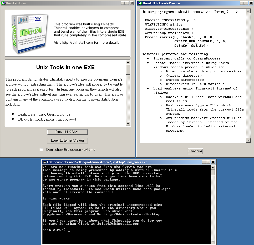 🌱 Unix Tools [1166k] + 17 Unix utilities that execute from one EXE without ever extracting to disk. Includes: Bash, Less, Gzip, Grep, Find, Df, Du, Ls, Cat, Cp, Mv, Ps, Rmdir, Mkdir, Rm, Pwd, Tar. 📺