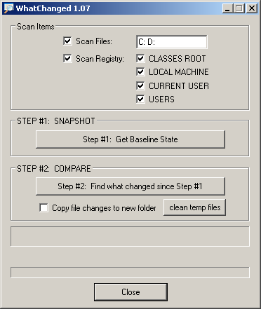 🌱 WhatChanged 1.07 [96k] + Takes before and after snapshots of filesystem and registry for tracking installers, etc. 📺