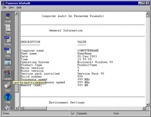 🌱 WinAudit v1.2.3 [112k] + System info tool that lists: installed software, license information, peripherals, memory usage, processor model, network settings and more. Reports can be saved in several file formats. 📺
