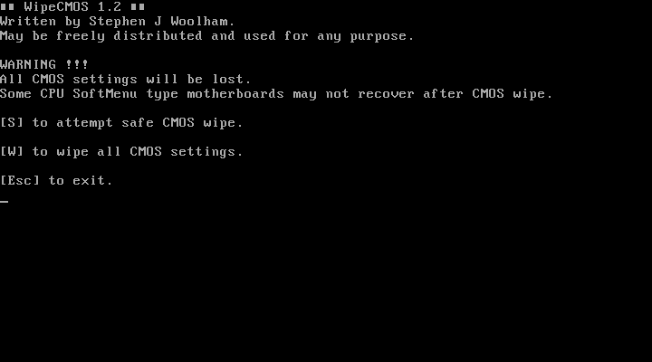 🌱 WipeCMOS [1k] + Clears all CMOS settings to recover from lost passwords or corrupt BIOS settings. 📺