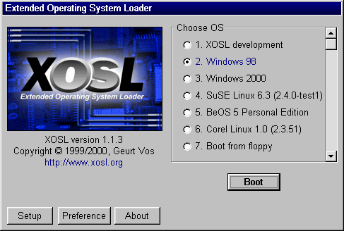 🌱 XOSL v1.1.2 [101k] {S}+ "Extended Operating System Loader (XOSL) is the world's only full-featured free boot manager with a real, easy-to-use and full-blown graphical user interface." 📺