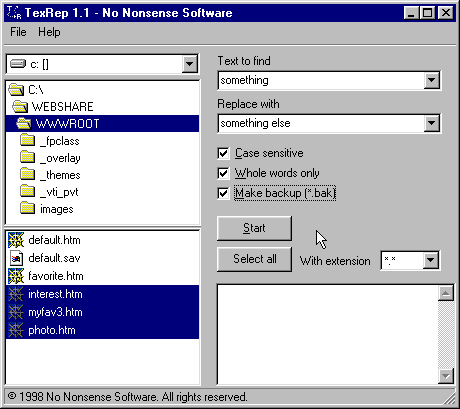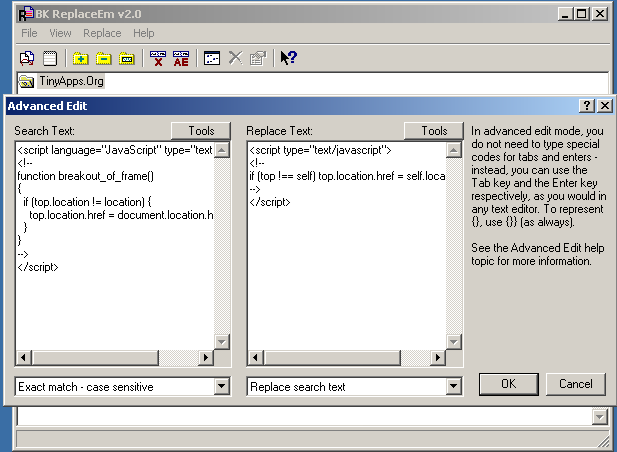 BK ReplaceEm 2.0 [410k] + Incredibly powerful text search and replace utility for Windows. (With the kind permission of the author, this non-installing version is hosted by TinyApps.) 📺 💾 🌎