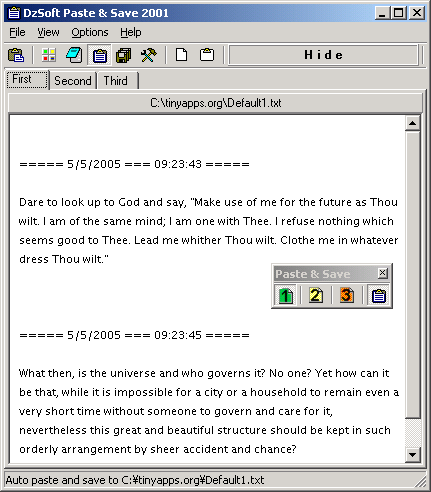 DzSoft Paste & Save 2001 [556k] Save text clips in one continuous file 📺 💾 🌎