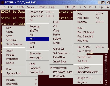 EDXOR [22k] + Innovative clipboard handling, cryptographic options and logic text conversions. Supports large files, drag-and-drop, file associations and command line. 📺