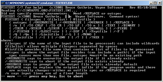 🌱 FIXTEXT [79k] + Applies a user-definable character-translation table to a text file. Convert graphics characters to their text equivalents, lowercase letters to uppercase letter, etc. Translate DOS text files to Mac or Unix text files and vice versa. Expand tabs, remove trailing spaces, and remove backspaces. 📺