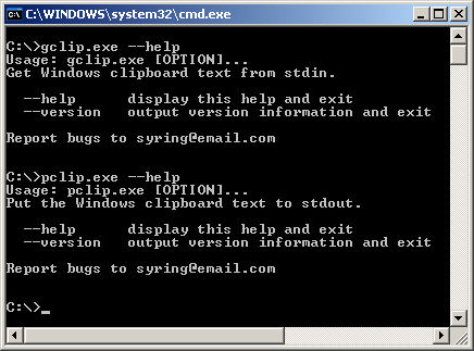 🌱 gclip.exe 1.0 [8k] {S}+ Get Windows clipboard text from stdin; similar to pbcopy. 📺 💾