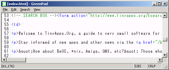 🌱 GreenPad 1.05 [70k] {S}+ Text editor with syntax highlighting, regexp search, unicode support, more. 📺