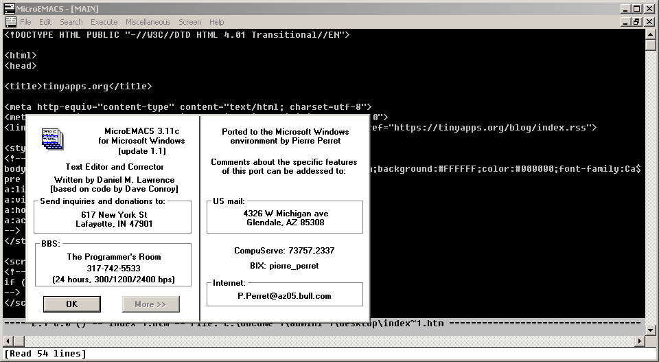 🌱 MicroEMACS 3.11c [198k] {S}+ Text editor based on GNU Emacs. Binaries for many platforms available. 📺