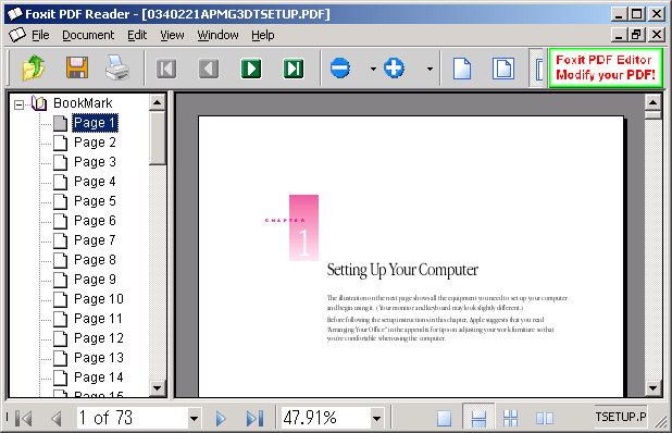Foxit PDF Reader 1.3 [1239k] + View and print PDF documents. CJK support with additional download. Free non-commercial use. 📺