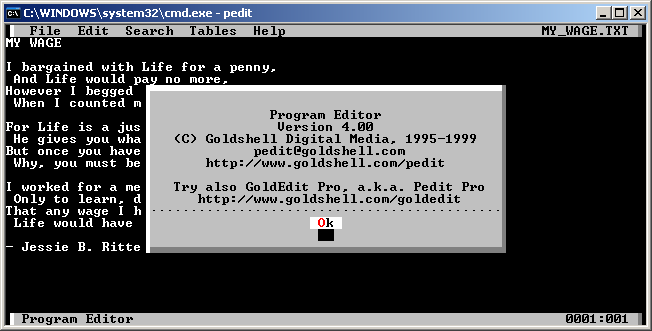 🌱 Pedit 4.0 [301k] + "Includes pop-up tables, column support, macro key, undo, copy & paste to other Windows applications, long filenames, word wrap, spell checker, thesaurus, HTML support, and much more." 📺