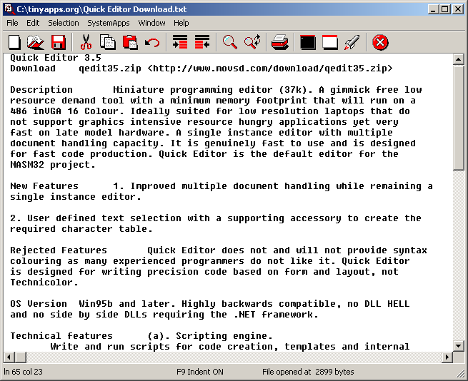 🌱 Quick Editor 3.5 [37k] + Powerful text editor with a scripting engine, TrueType support, comprehensive search and replace function, much more. From the maker of The GUN (which is also included in the download). 📺