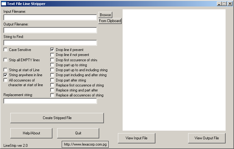🌱 Text File Line Stripper 2.1 [22k] + Strip or modify lines from a text document or the clipboard if the lines contain a certain string (or alternatively, if they don't contain the string). 📺