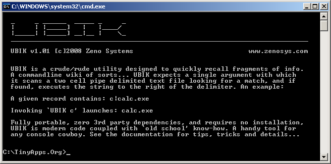 🌱 UBIK 1.01 [23k] + Very simple database run from the command line. Suitable for small fragments of text like phone numbers, bookmarks, email addresses, etc. 📺