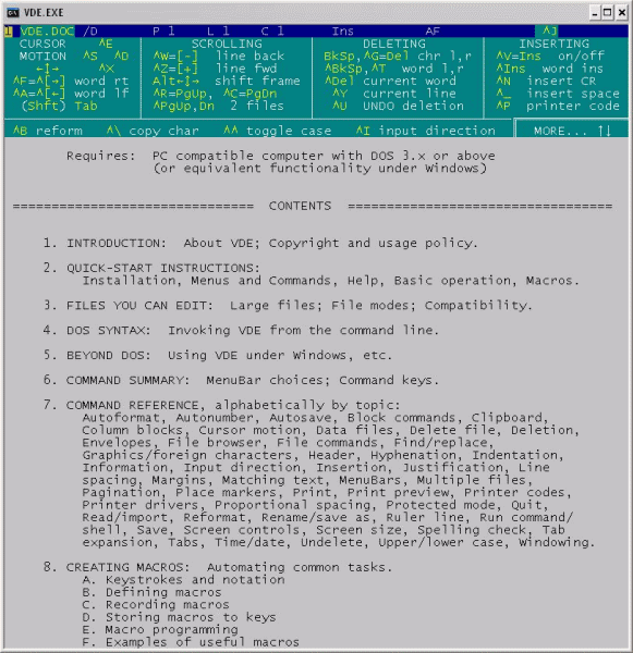 🌱 VDE 1.96A [90k] + DOS/console text editor with an essential core of word processing features, including support for WordStar, WordPerfect, and Microsoft Word formats. 📺